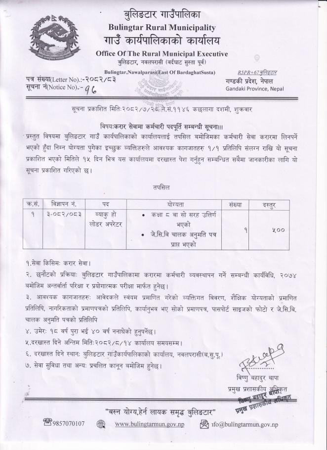 करार सेवामा कर्मचारी पदपुर्ति सम्बन्धी सुचना ।