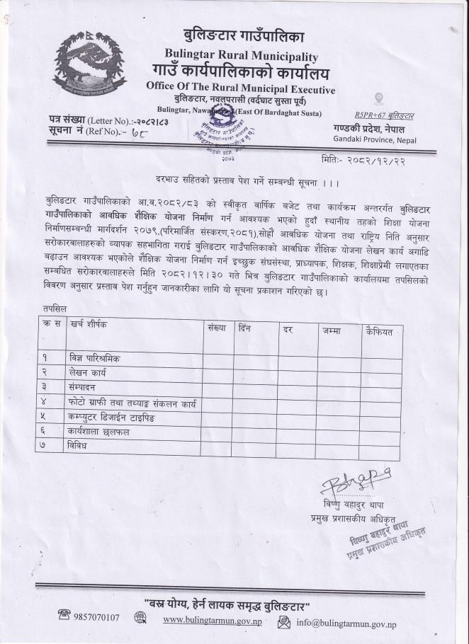 दरभाउ सहितको प्रस्ताव पेश गर्ने सम्बन्धी सूचना !!!