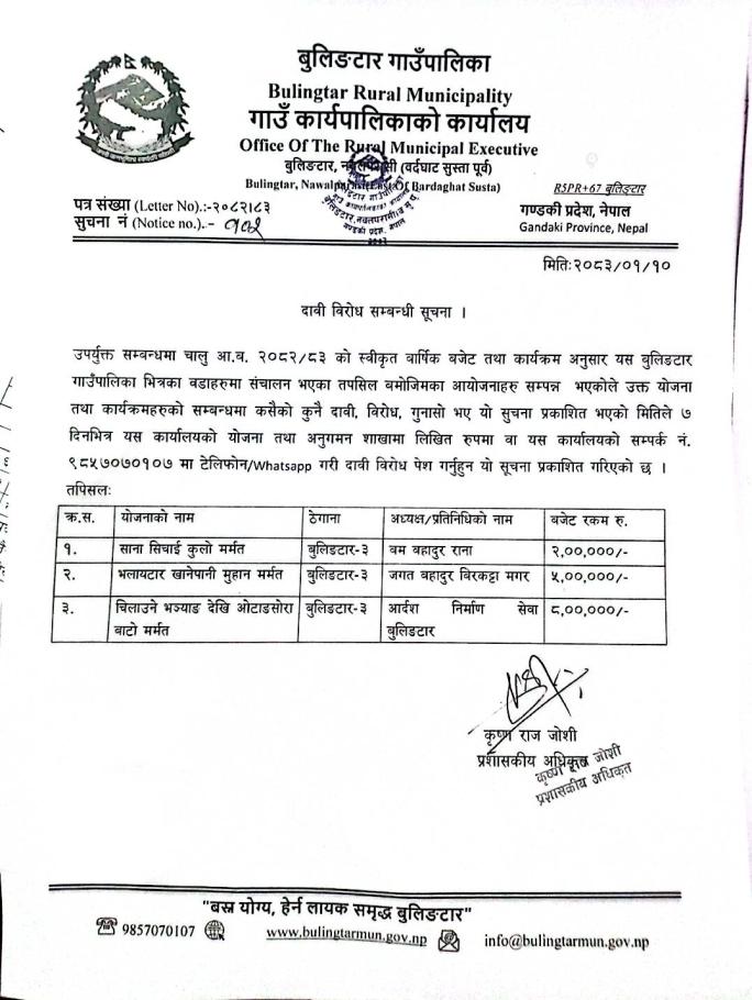 दावी विरोध सम्बन्धी सुचना !!!