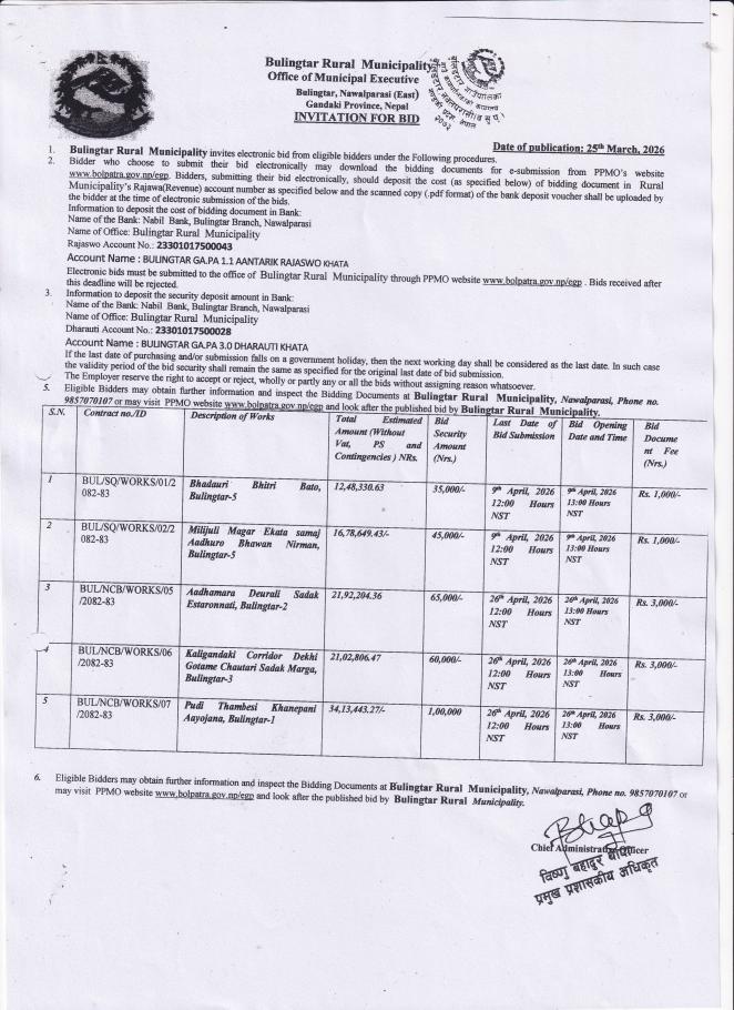 सार्वजनिक खरिद/बोलपत्र सूचना
