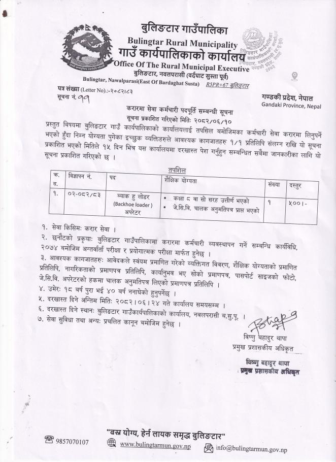 करारमा सेवा कार्मचारी पदपुर्ति सम्बन्धी सुचना ।