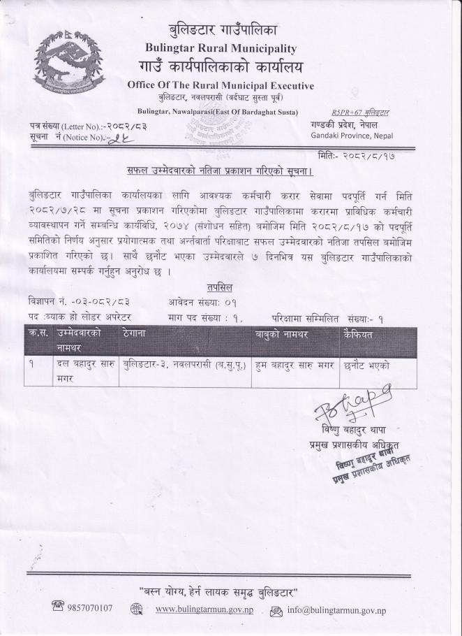 सफल उम्मेदवारको नतिजा प्रकाशन गरिएको सुचना !!!