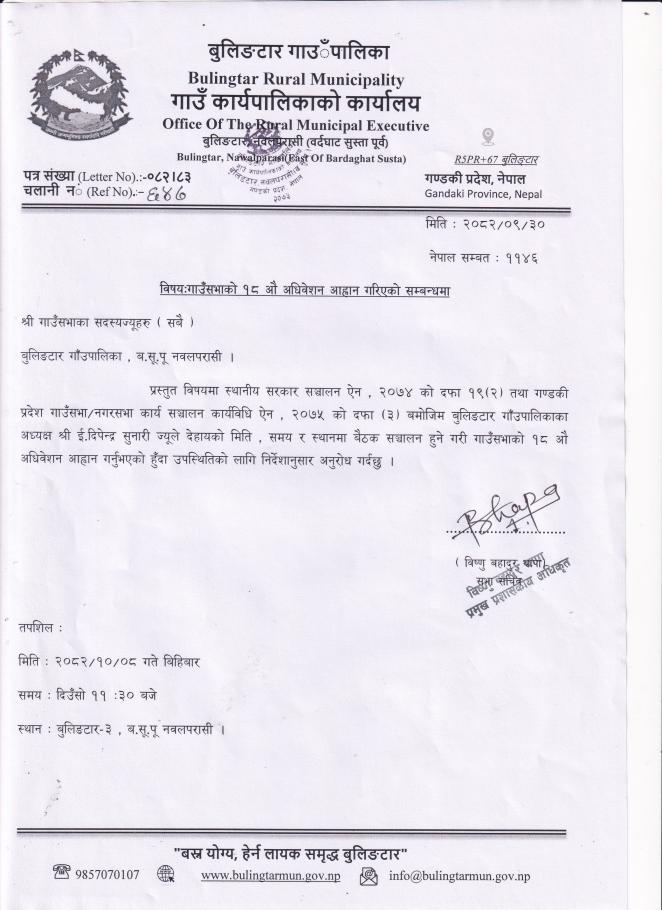 गाँउसभाको १८औ अधिवेशन आह्वान गरिएको सम्बन्धमा ।