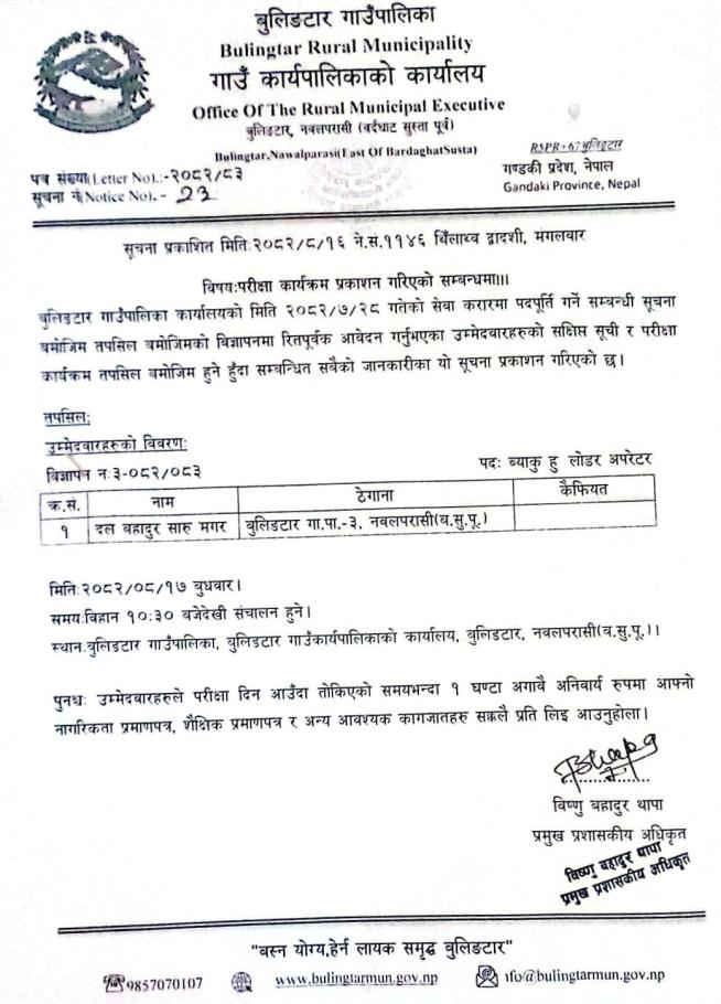 आ.व २०८२।०८३ को ढुंगा, गिट्टि र बालुवा उत्खनन् गरी बिक्री गर्ने कार्यको बोलपत्र आह्वान सम्बन्धी सुचना !!!