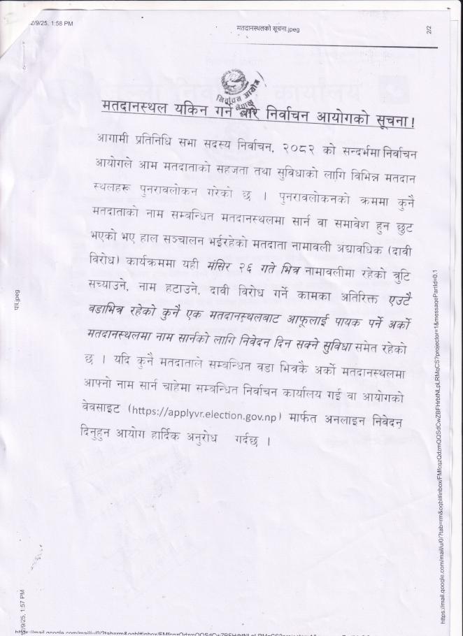 मतदानस्थल यकिन गर्ने गरी निर्वाचन आयोगको सुचना !