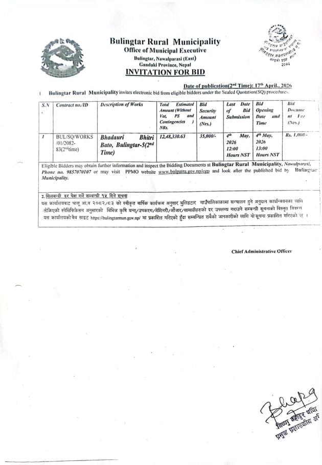 दरभाउ सहितको प्रस्ताव पेश गर्ने सम्बन्धी सूचना !!!